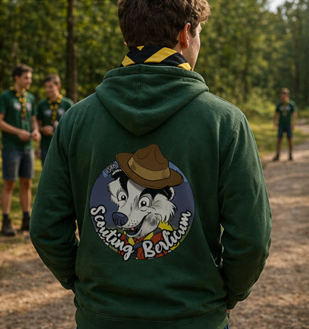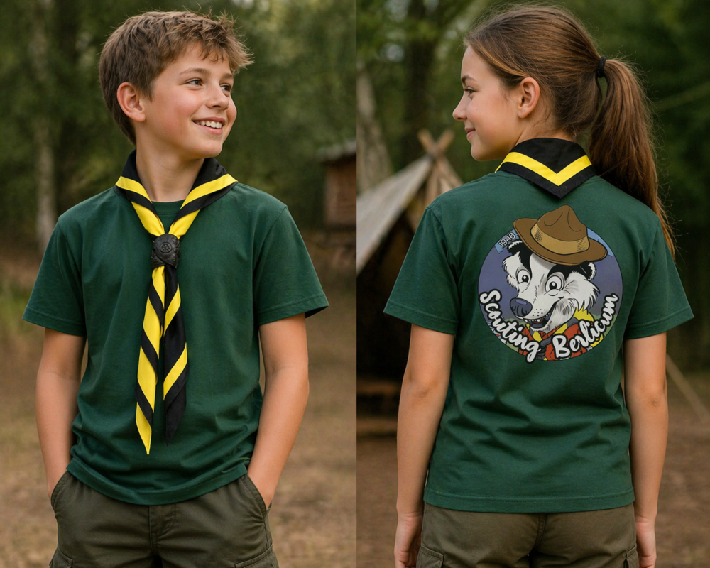 - De das en dasriem kunnen na bestelling worden aangevraagd bij de leiding tijdens het groepdraaien. Deze worden vervolgens daar uitgedeeld.